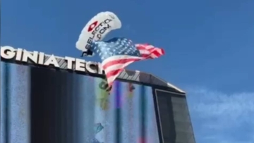 Lors du spring game de Virginia Tech, un parachutiste a été emporté par le vent et a violemment ...